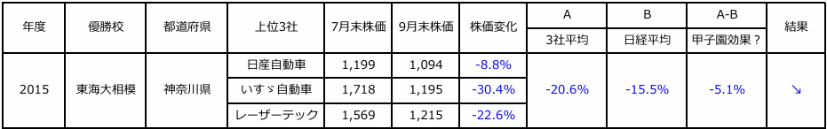 優勝した神奈川県においても大きく株価が下がり、日経平均以上の下落でした。