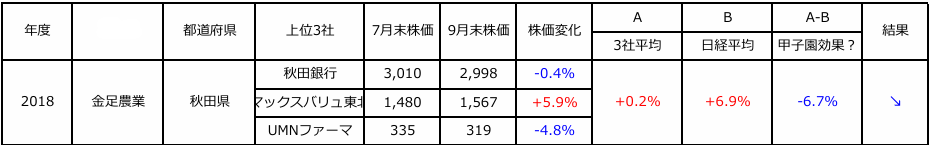 大都市よりも地方のほうが盛り上がって株価も上がるんじゃないかということで、近年まれに見る地方の活躍で印象深い2018年大会の金足農業高校のある秋田県について検証。結果的には、残念ながら、ギリギリ上昇した程度で、日経平均には大きく差を広げられてしました。