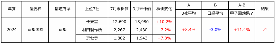 優勝した京都の株価も堅調で、日経平均以上の上昇となりました。