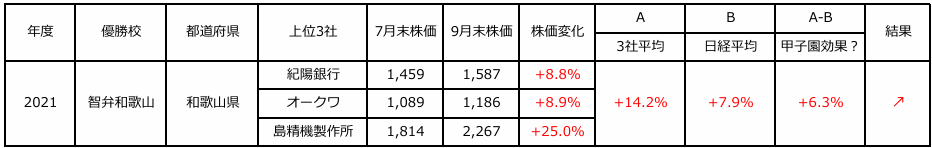 優勝した和歌山県も上位3社共に日経平均を上回る上昇をみせました。