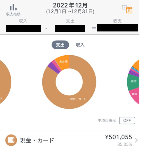 実際の当時の家計簿を貼り付けています。実際は連携していなカードの支出もありますが、そんなの気にならないくらい圧倒的な現金派でした。