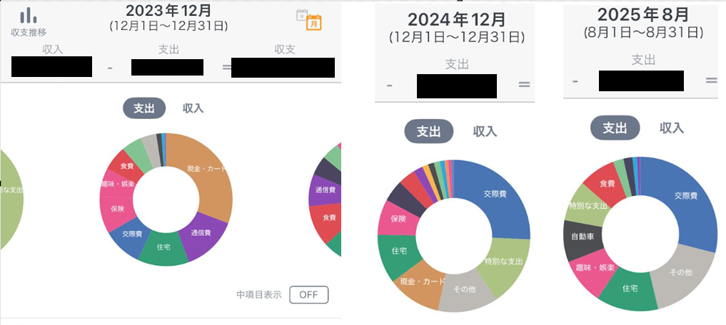 2024年にはほとんどキャッシュレス化できて、現在2025年8月時点では、完全キャッシュレスとなった。財布の中には、割り勘の時にもらった札が残って、現金しか使えない居酒屋の支払いにだけ使っている。