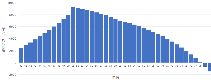 最終的に、79歳で資産が尽きる結果となりました。