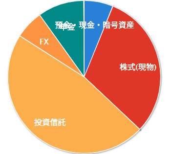 前月比+87万円ということで、投信積立以上に増加、市況が良いということに尽きる感じでした。現預金は積立て分も含めて、給料以上に減っていくので、これはしょうがないと思いつつ、遊び過ぎているとは思うので反省。