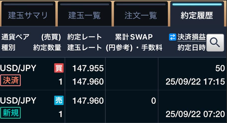 朝出勤前にショートを入れて、仕事終わってポジションを解消しました。